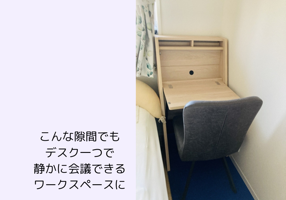 ご自宅に複数の人がいる時間でも、集中して仕事をしたい時や会議などの静かな空間が必要なときは寝室がおすすめです。