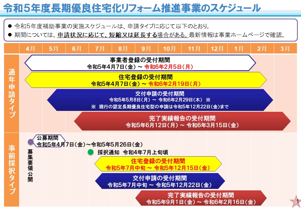 (令和5年度より全体設計(2カ年申請)の場合も、住宅登録後にリフォーム工事に着手可)