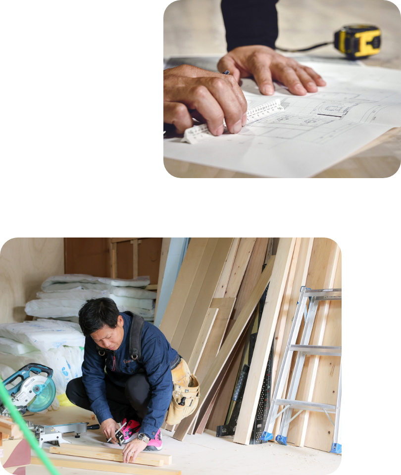 朝は現場に誰よりも早く入り、 夜は事務所で日付が変わるまで図面や段取りに向き合う。