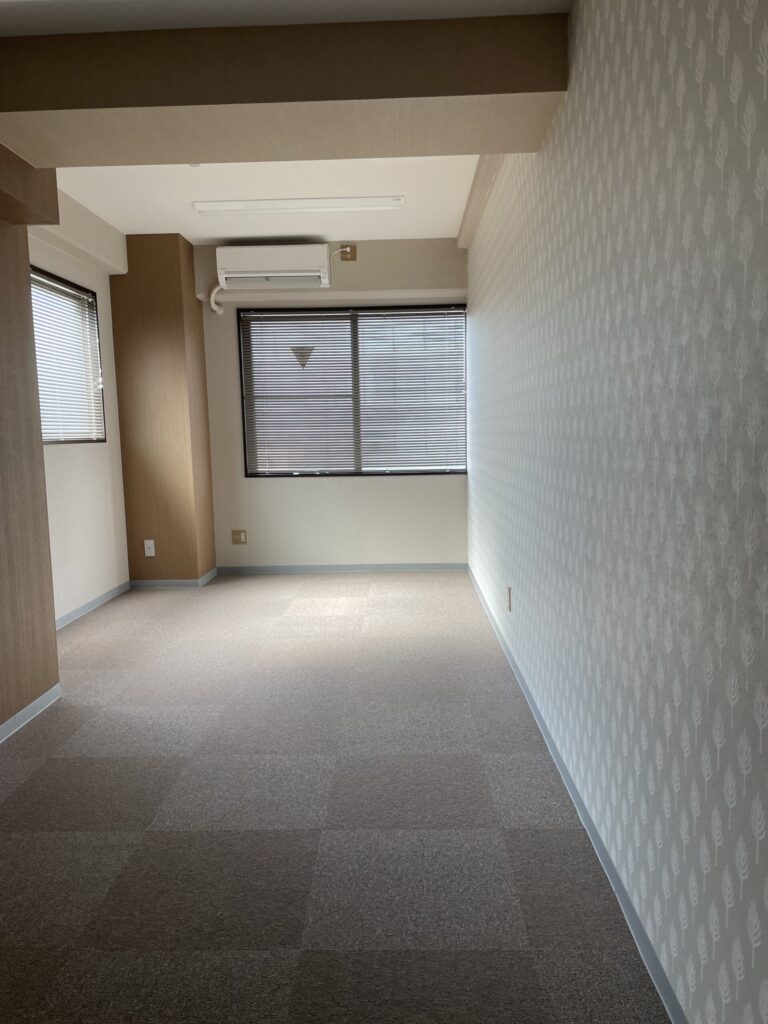 施工場所: 1DK事務所 工事内容: クロス張り替え・フローリング→カーペット変更 工期: 複数日