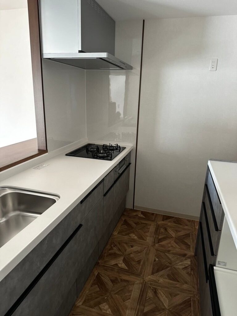 今回手掛けたのは、マンションの水回り一式を交換するリノベーション工事です。キッチン・浴室・洗面室・トイレと、水回りをまとめてリニューアルすることで、同じマンションとは思えないほど印象が変わり、毎日の暮らしが心機一転しました。