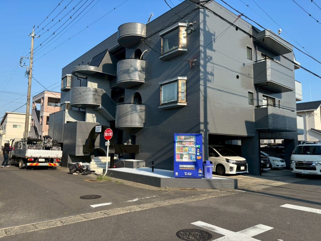 今回ご依頼いただいたのは、マンションの外壁塗り替え工事です。これまでのベージュから、落ち着いたシックなグレーへのカラーチェンジ。完成した瞬間、「同じ建物とは思えない」と感じるほど、印象ががらりと変わりました。