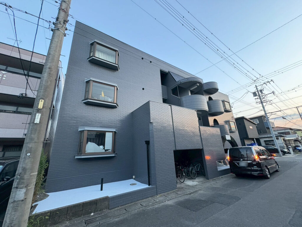 今回ご依頼いただいたのは、マンションの外壁塗り替え工事です。これまでのベージュから、落ち着いたシックなグレーへのカラーチェンジ。完成した瞬間、「同じ建物とは思えない」と感じるほど、印象ががらりと変わりました。